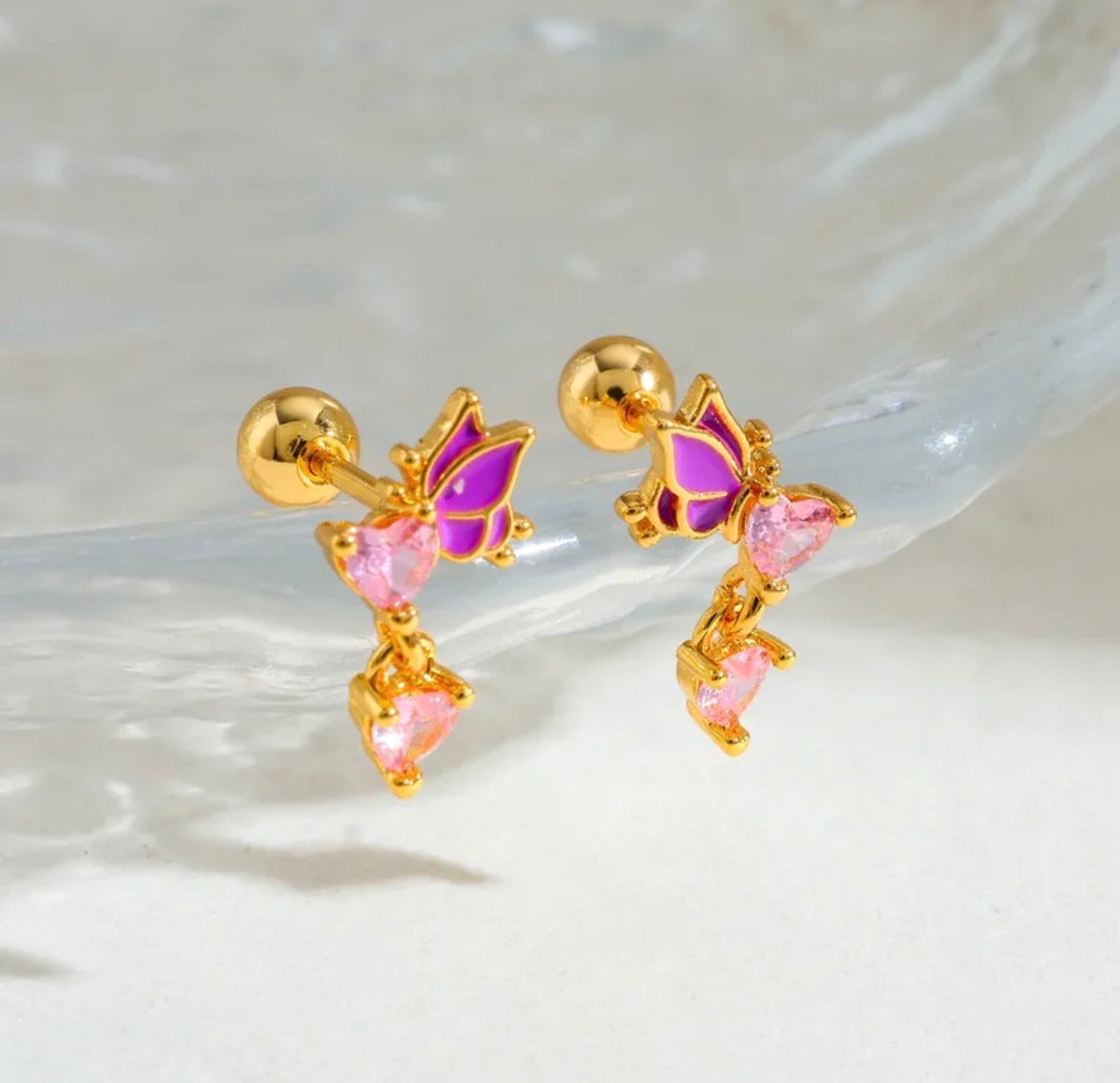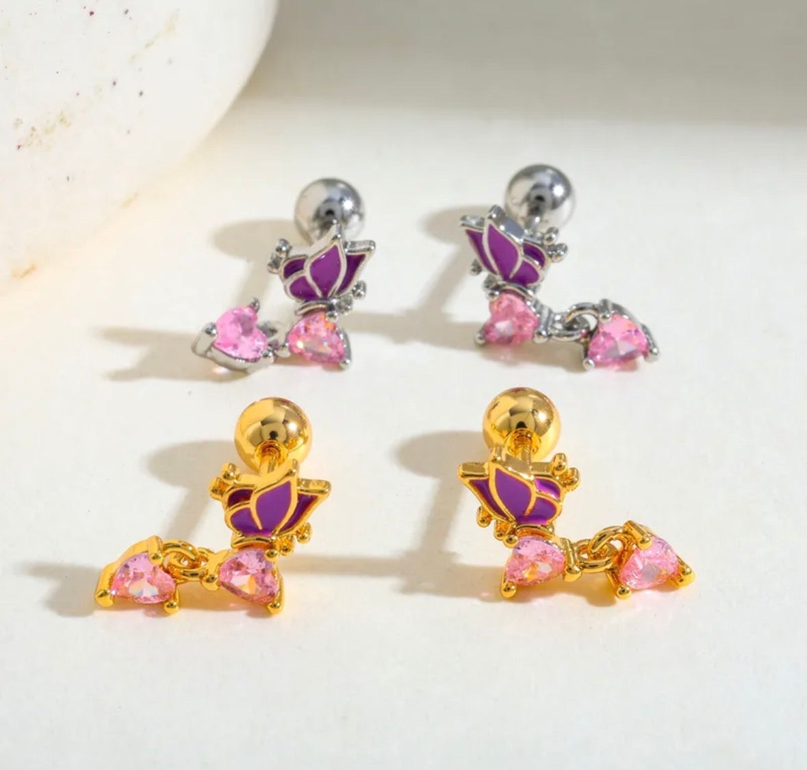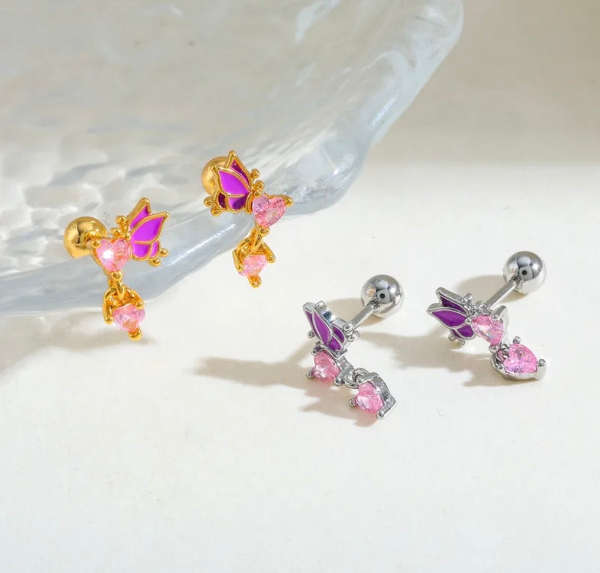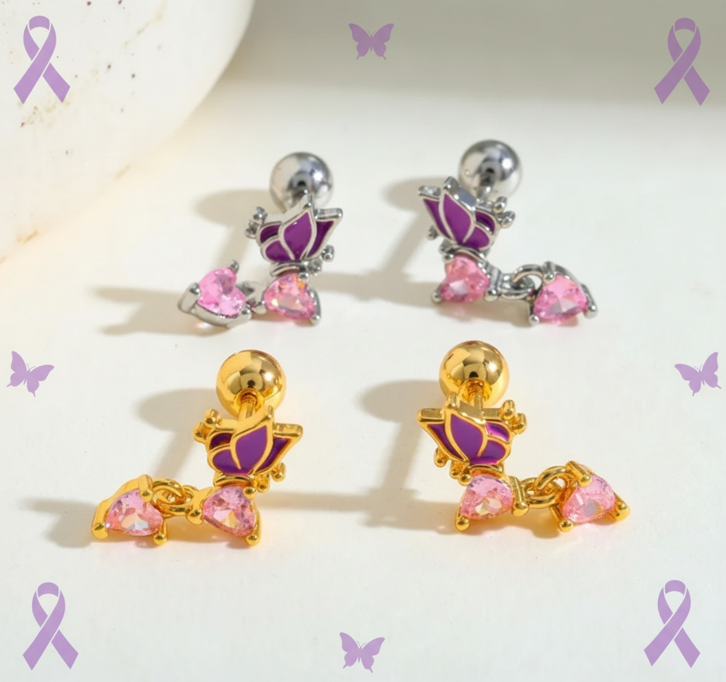 Estos aretes simbolizan las batallas que casi nadie ve, pero que se enfrentan con valentía todos los días. Sus alas púrpuras hablan por quienes viven con lupus, una condición invisible que requiere comprensión, apoyo y empatía.