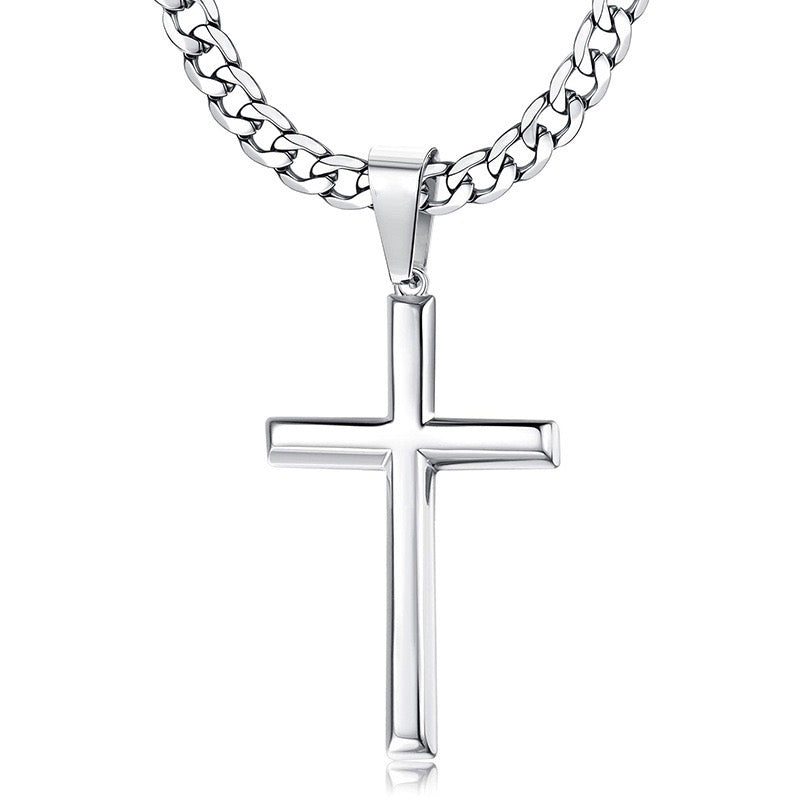 Cadena estilo cubana hecha en acero inoxidable con pendiente de cruz simple hecho en acero de titanio.