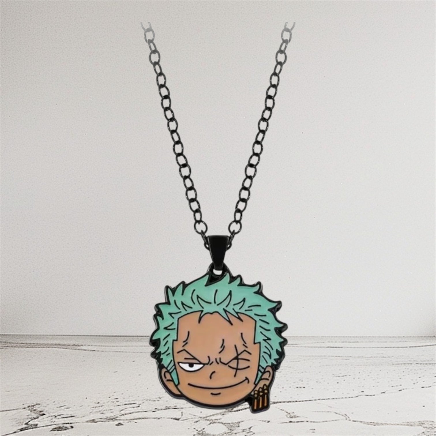 Collar con pendiente de Zoro Roronoa de One Piece, hecho en aleacion de zinc, midiendo 60cm de largo.