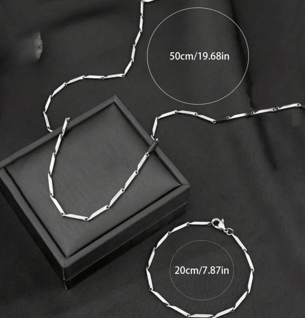 Conjunto cadena 3mm x 50cm y pulsera 3mm x 20cm, hechos en acero de titanio. Para niños.