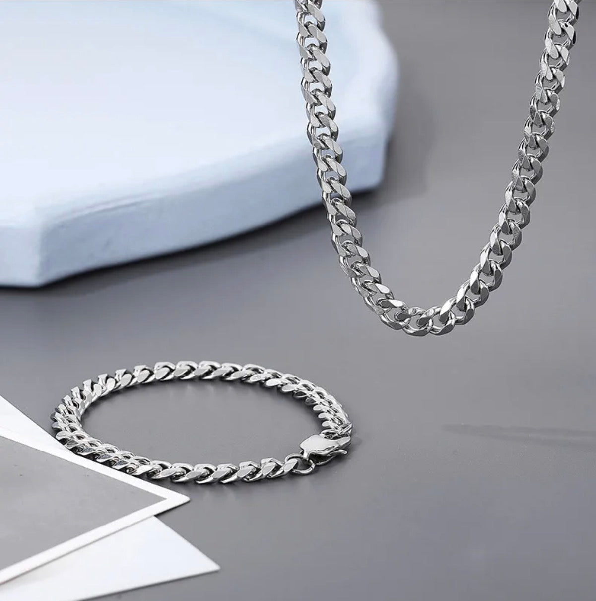 Conjunto de cadena 7mmx50cm y pulsera 7mmx20cm, hechas en acero de titanio. Para niños.