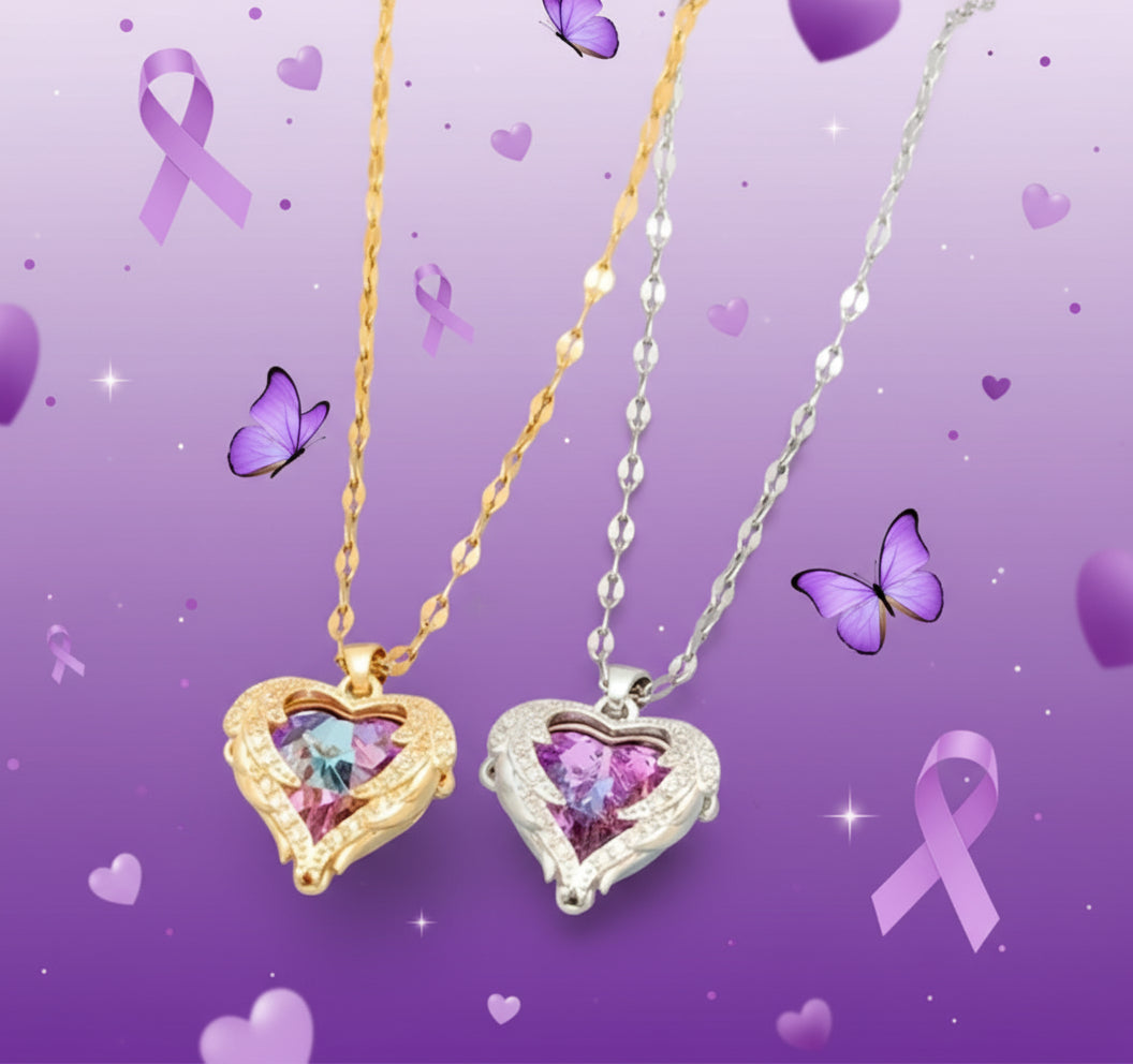 Este collar simboliza la fortaleza interior de quienes viven con lupus. El cristal púrpura refleja los matices de la esperanza, la empatía y la valentía que florecen incluso en los días más difíciles. Con cada destello, recuerda que la belleza también puede nacer de la lucha, y que visibilizar el lupus es una forma de transformar el dolor en conciencia y amor propio.