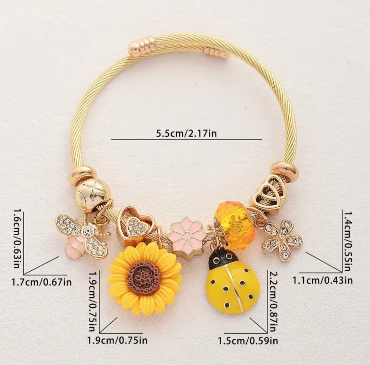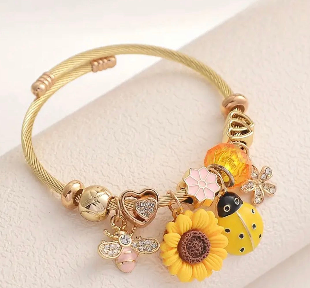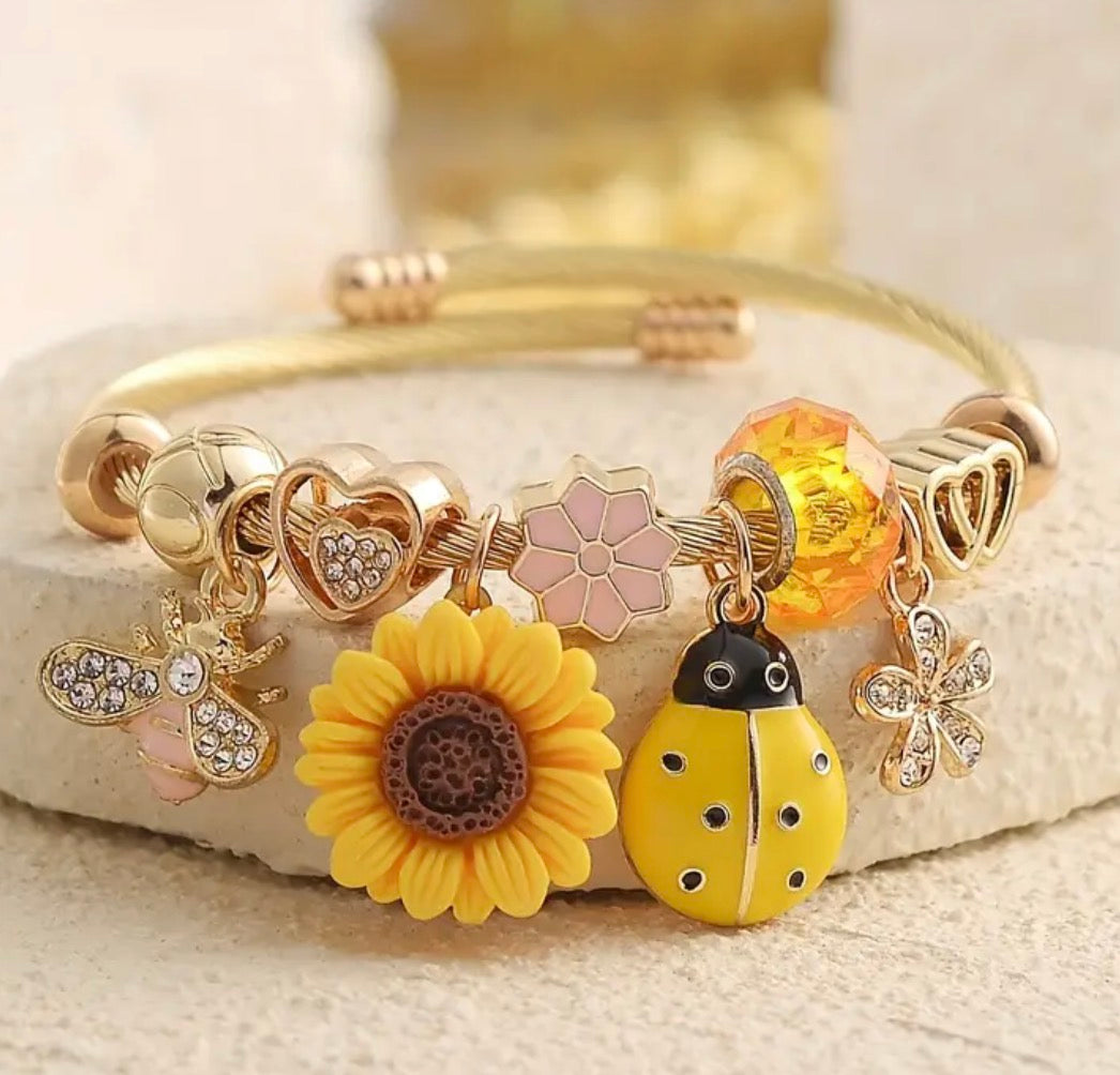 Cada charm —la abeja, la flor, la mariquita y el brillo dorado— nos recuerda que la vida está llena de pequeños milagros, y que pedir ayuda, hablar y sostenerse de los que amamos también es un acto de valentía.