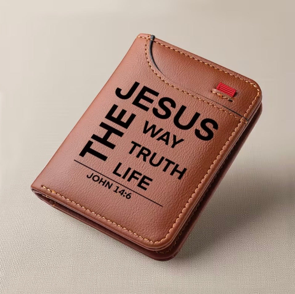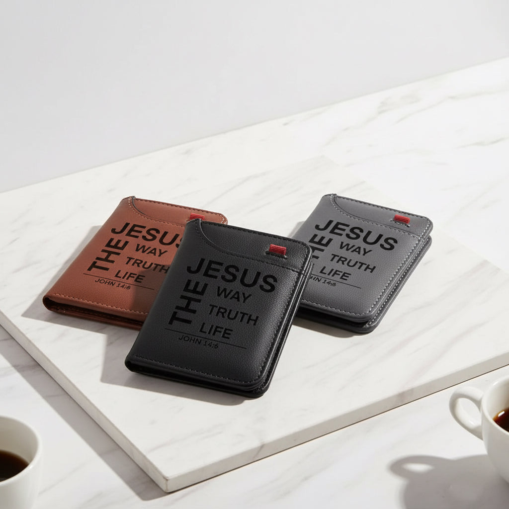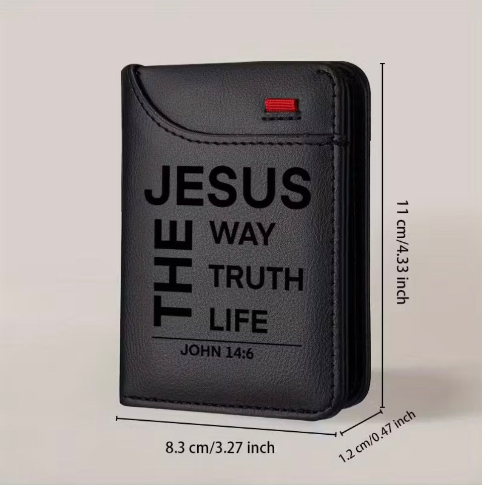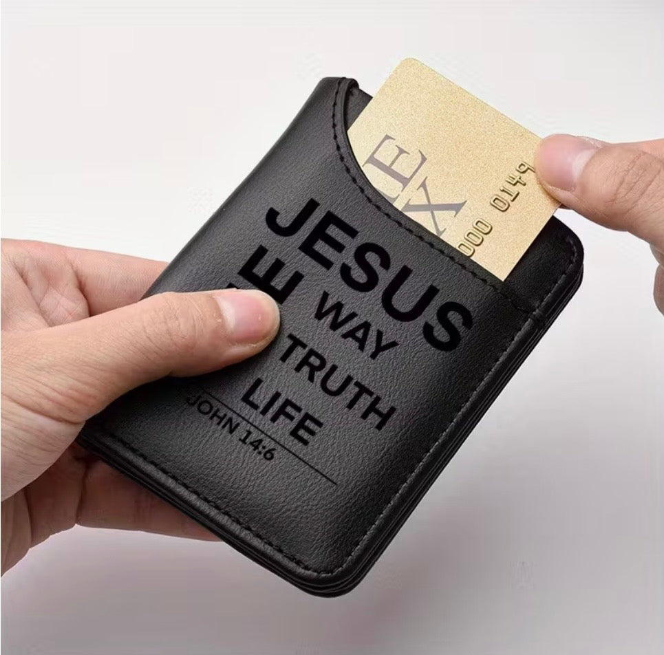 ITarjetero con el versiculo Juan 14:16 grabado, el tarjetero perfecto para llevar tus tarjetas con estilo y elegancia. Hecho con una grabación detallada de Juan 14:16, te recordará siempre de las palabras de esperanza y amor de Jesús. Mantén tus tarjetas seguras y organizadas con esta pieza única. Hechas en PU.